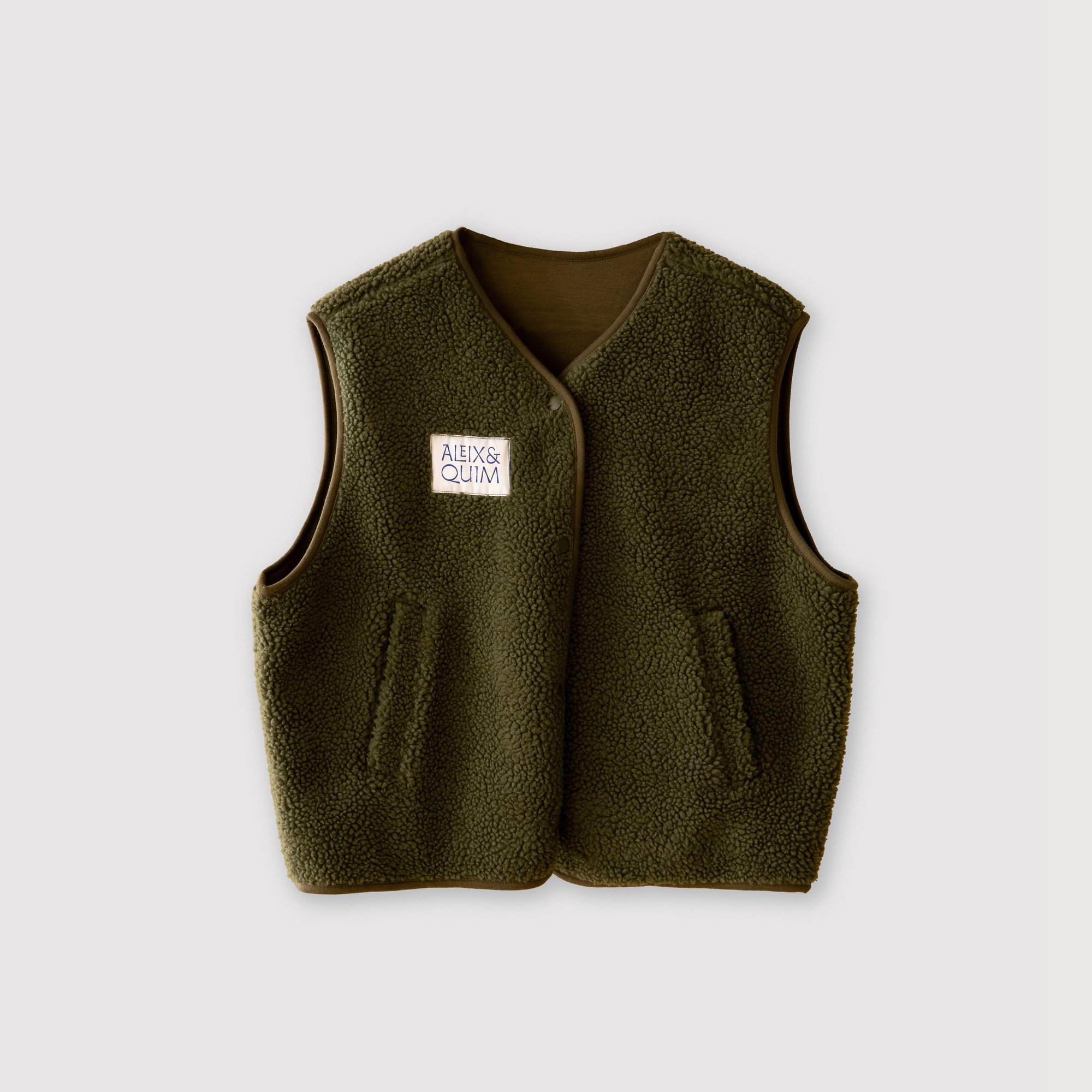 Tejido Sherpa Vegano*. Esta prenda presenta un corte oversize y un suave tejido sherpa con forro interior de jersey para mayor comodidad. El cuello, forrado con el mismo material principal, aporta calidez y continuidad al diseño.